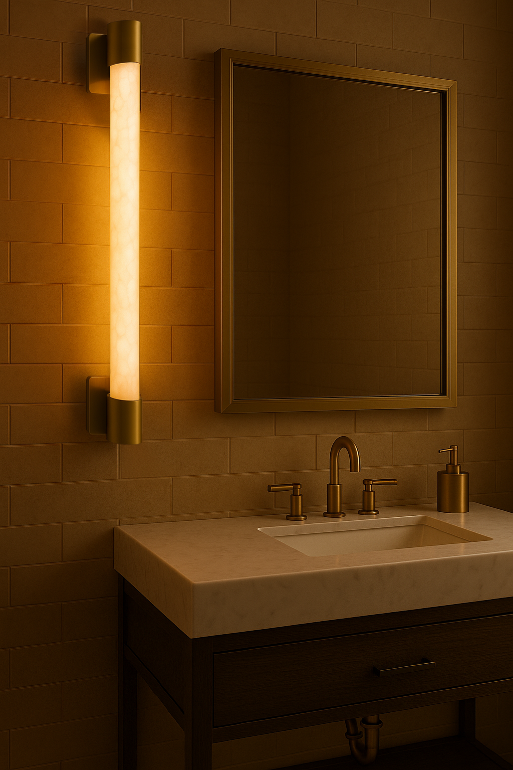 Natural alabaster, meet minimalism. The Lennox Sconce brings an elegant, organic touch to bathrooms, bedrooms, and built-in millwork. Its softly curved form and satin brass detailing elevate any design, while its compact projection and two available sizes make it incredibly versatile.